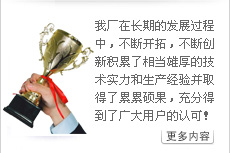 我廠堅持“以質量求生存,以品種求發(fā)展,以服務求信譽”,我們將不斷的努力為石化行業(yè)制造出更多質量更好的石化裝備產品。 |